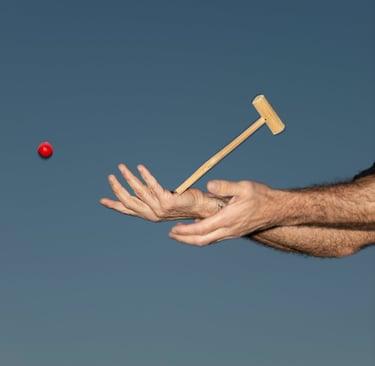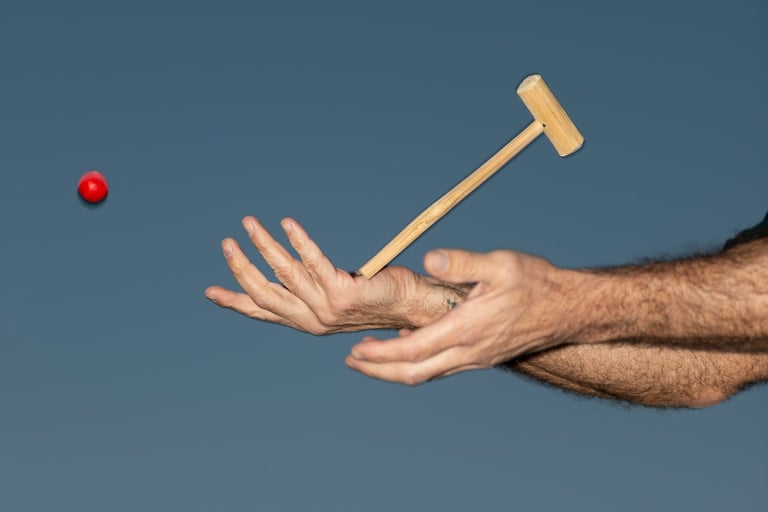It seemed lonely on its own, so he picked up one of several small wooden mallets he owns from his time in Myanmar.